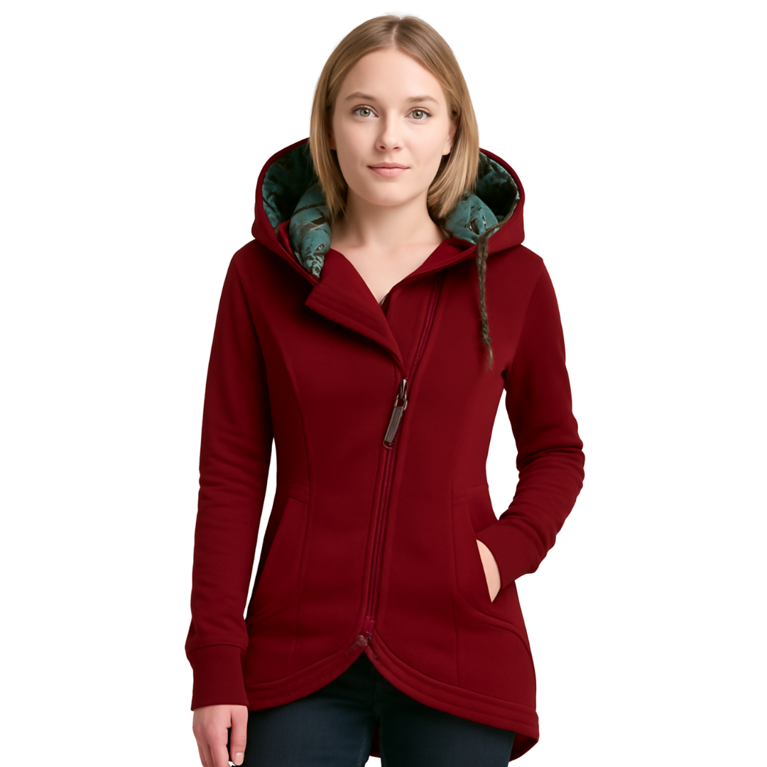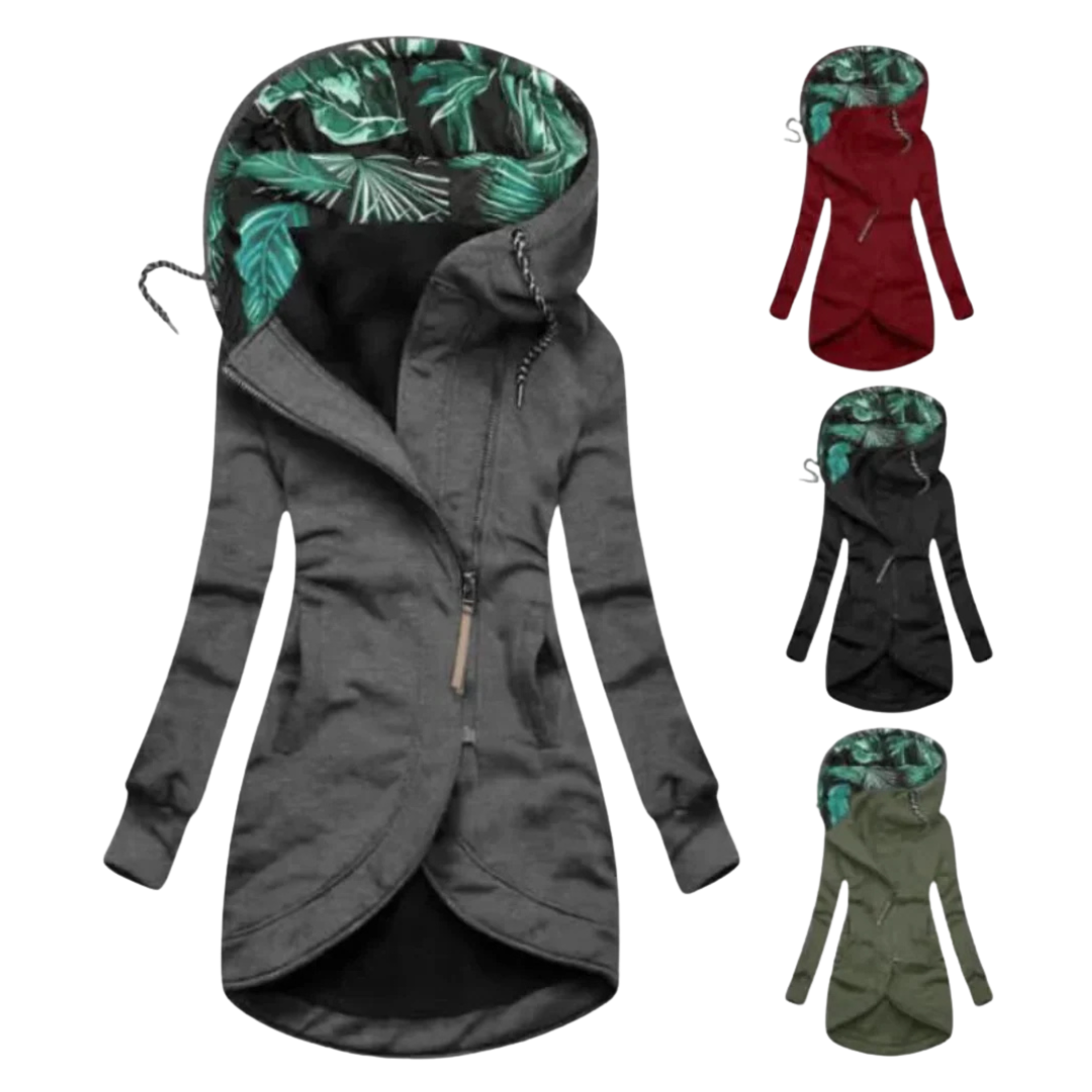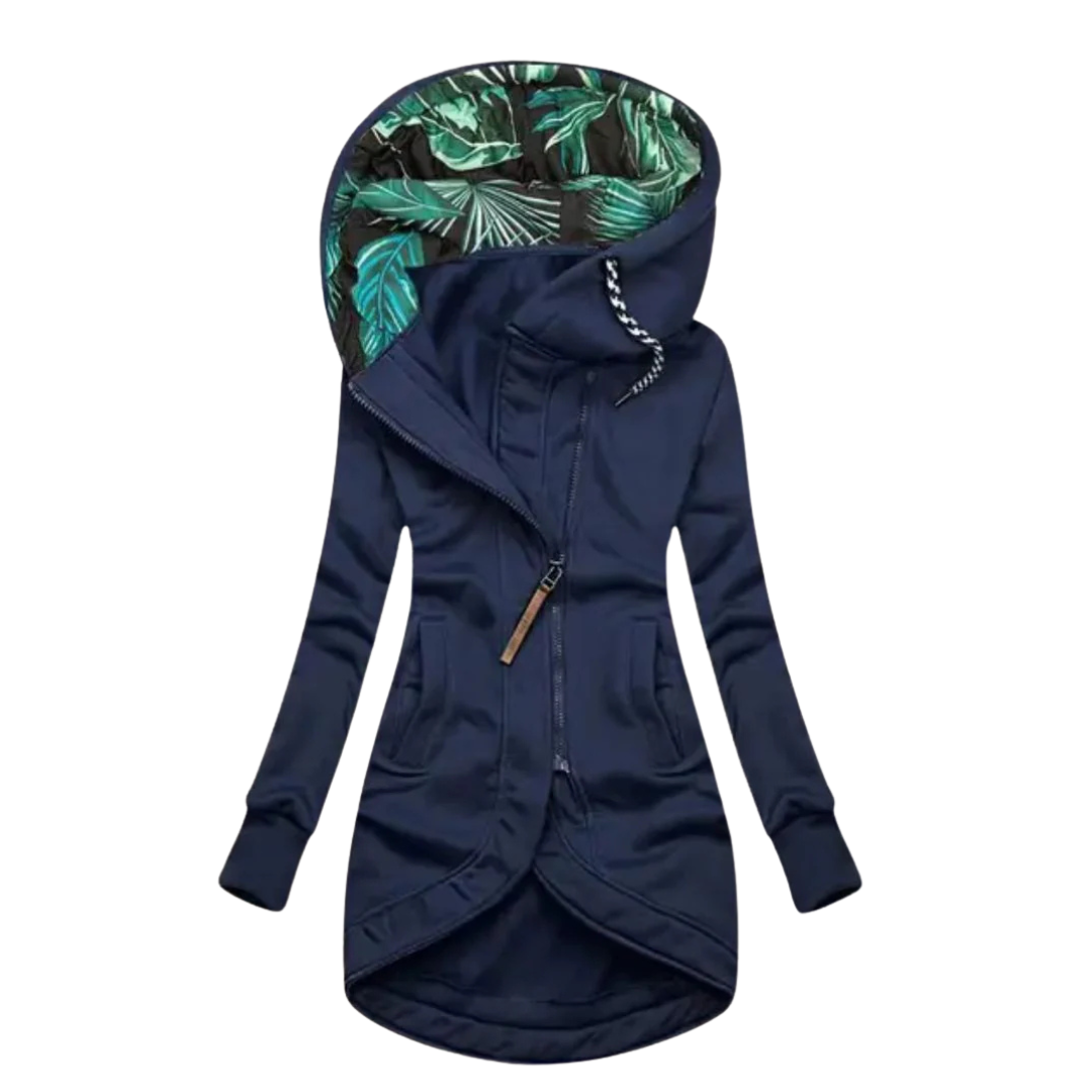 Elegancki i praktyczny design: Kurtka Amira charakteryzuje się prostym, nowoczesnym krojem, który łączy modny wygląd z funkcjonalnością. Korzystny fason podkreśla sylwetkę, a wydłużony krój zapewnia dodatkowe ciepło. Kaptur z tropikalnym wzorem wewnętrznej podszewki dodaje jej unikalnego charakteru.