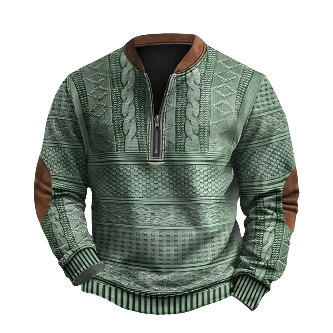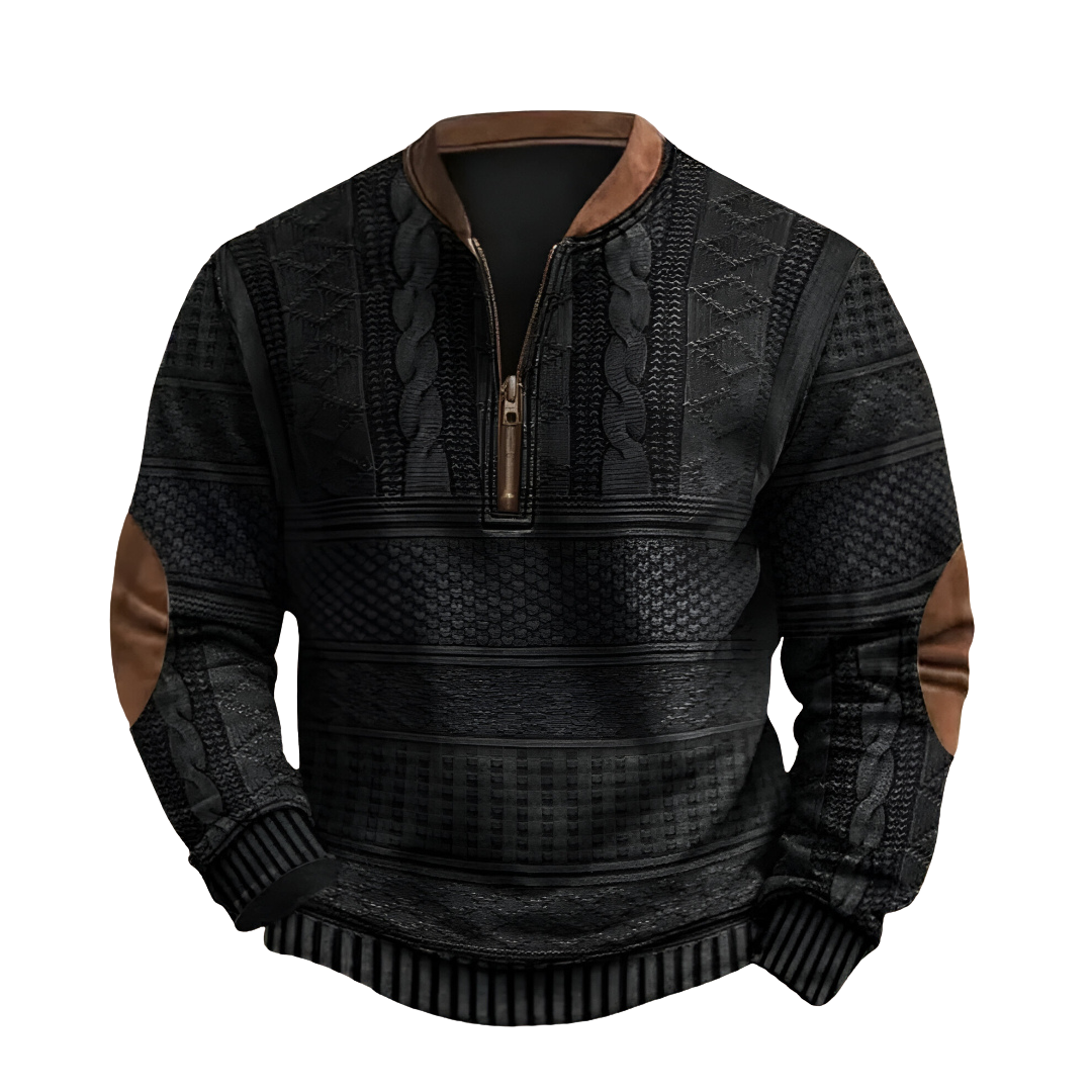 Model Kewin to połączenie klasycznej faktury dzianiny z unikalnymi elementami współczesnego wzornictwa. Dzięki stójce z krótkim suwakiem oraz dopracowanym szczegółom, sweter sprawdzi się zarówno w codziennym noszeniu, jak i w bardziej oficjalnych zestawach.